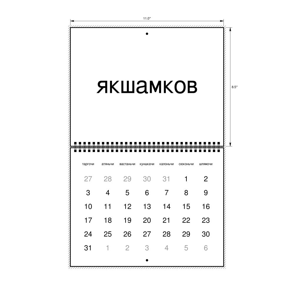 - Linguistics enthusiasts and polyglots - For "language geeks" interested in comparative linguistics or the mechanics of different languages and who value the aesthetic differences in scripts, orthography, and typography of different languages, the Erzya calendar serves as an object of intellectual interest. You can collect calendars for various languages to compare their linguistic roots (e.g., comparing Romance languages vs. Slavic languages). Leskoff's calendars are characterized by specific typographic choices that highlight the orthography and script unique to the target language. Think correct usage of diacritics, characters, and directional writing (left-to-right vs. right-to-left). The minimalist design focuses on legibility and aesthetic appeal of the script itself.