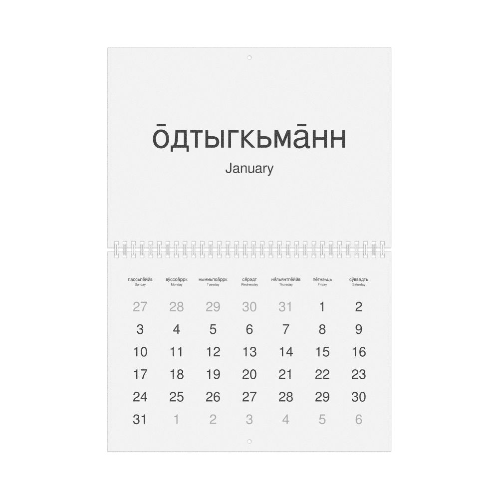 2027 Wall Calendar, Kildin Sámi-Labeled, Monday-Start Layout, Wire-Bound, 11.7 x 8.3 in (29.7 x 21.0 cm)