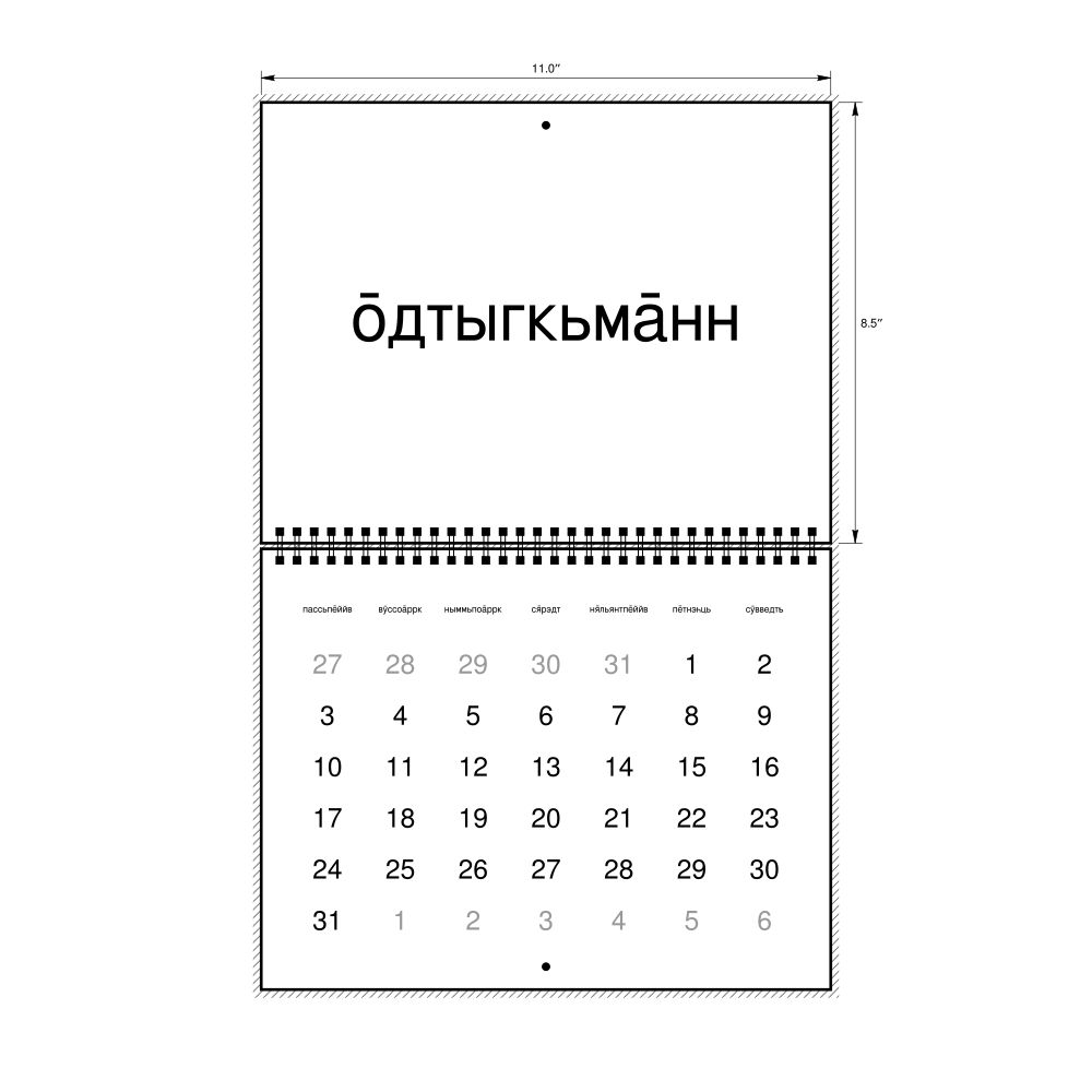 • Linguistics enthusiasts and polyglots - For "language geeks" interested in comparative linguistics or the mechanics of different languages and who value the aesthetic differences in scripts, orthography, and typography of different languages, the Kildin Sámi calendar serves as an object of intellectual interest. You can collect calendars for various languages to compare their linguistic roots (e.g., comparing Romance languages vs. Slavic languages). Leskoff's calendars are characterized by specific typographic choices that highlight the orthography and script unique to the target language. Think correct usage of diacritics, characters, and directional writing (left-to-right vs. right-to-left). The minimalist design focuses on legibility and aesthetic appeal of the script itself.