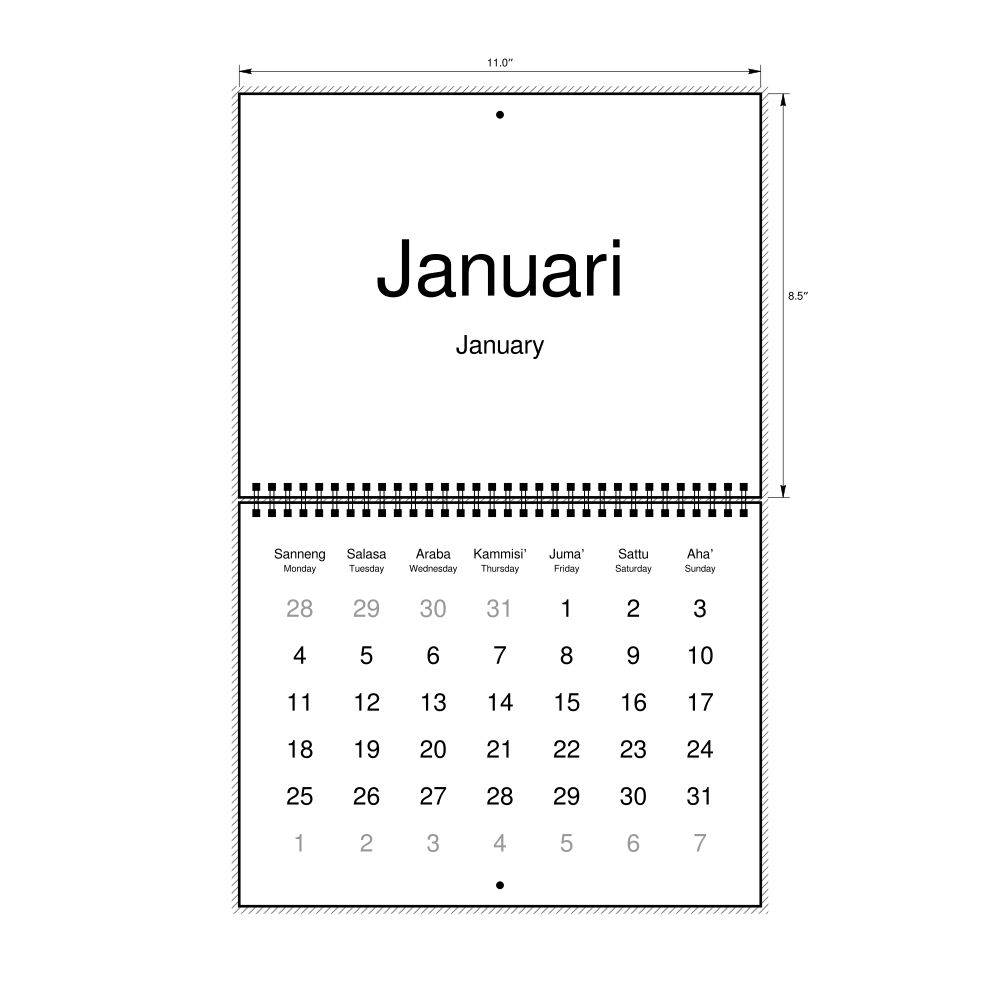 2027 Wall Calendar, Makassarese-Labeled, Monday-Start Layout, Wire-Bound, 11 x 8.5 in (27.9 x 21.6 cm)
