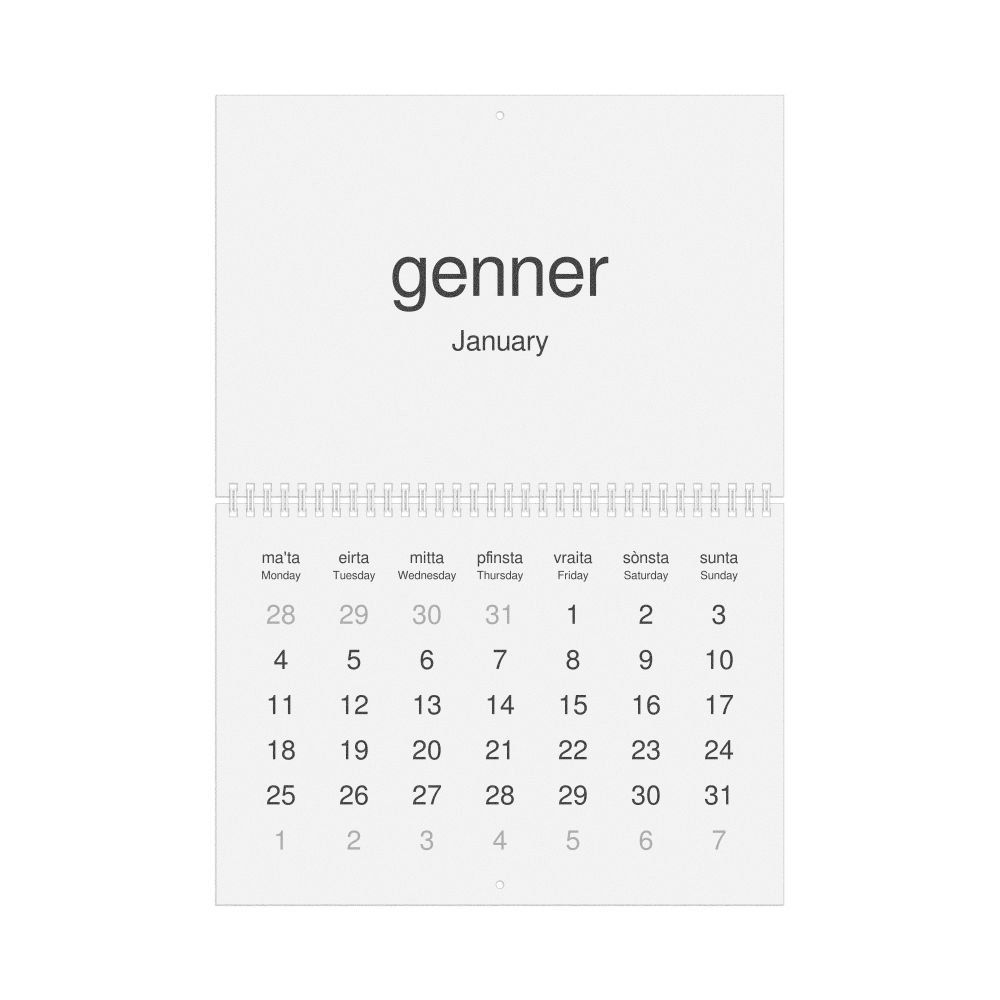 2026 Wall Calendar, Mòcheno-Labeled, Sunday-Start Layout, Wire-Bound, 11.7 x 8.3 in (29.7 x 21.0 cm)