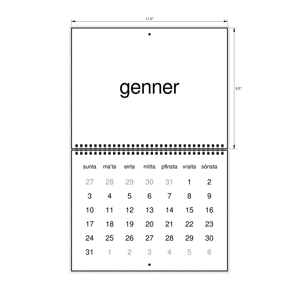 • Mòcheno language learners and students - For individuals currently studying Mòcheno, this calendar acts as a tool for passive learning and vocabulary reinforcement. It integrates essential Mòcheno vocabulary into a daily visual environment and promotes retention through passive immersion and spaced repetition. Place it above a desk or study area to support immersion techniques.
