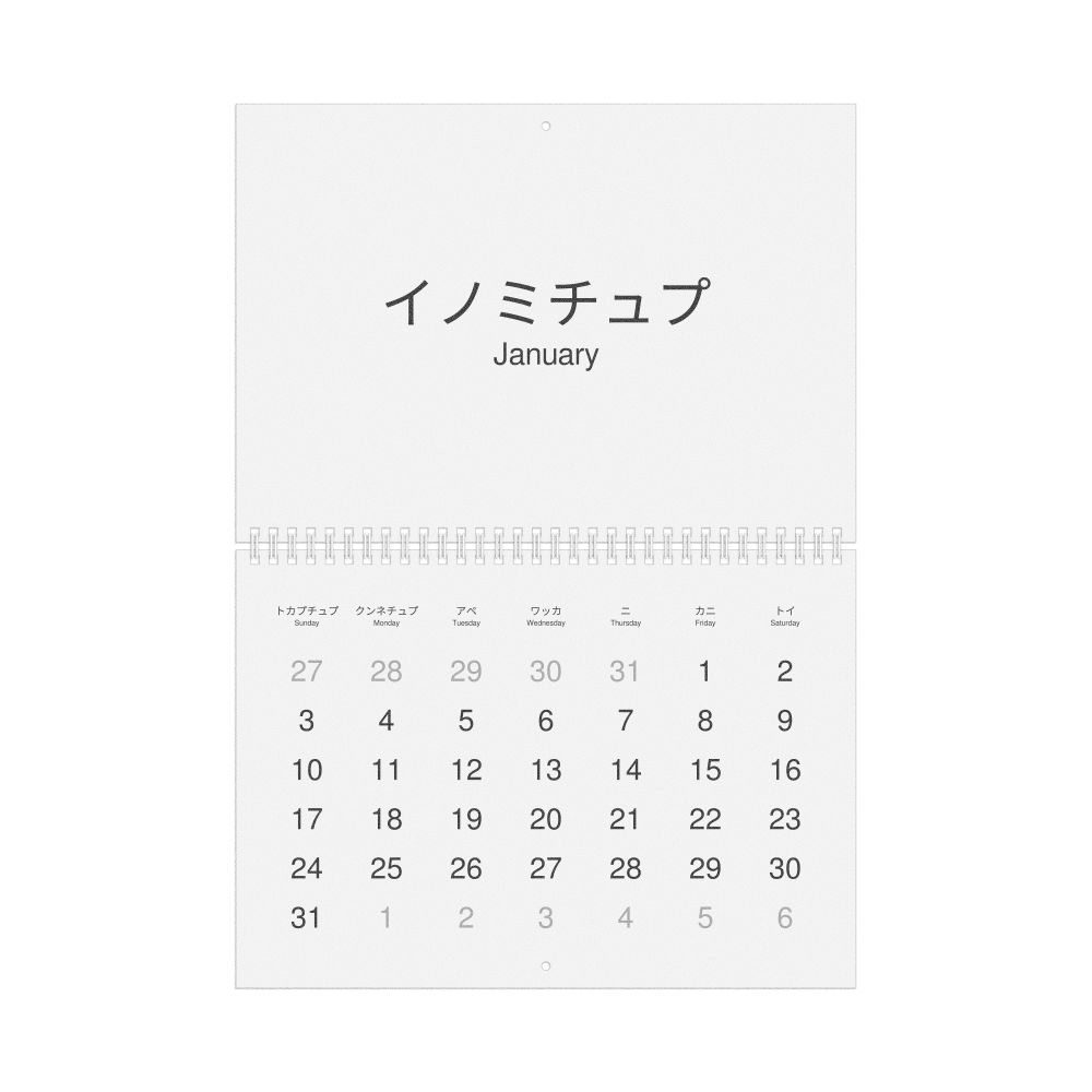 2026 Wall Calendar, Ainu-Labeled, Sunday-Start Layout, Wire-Bound, 11.7 x 8.3 in (29.7 x 21.0 cm)