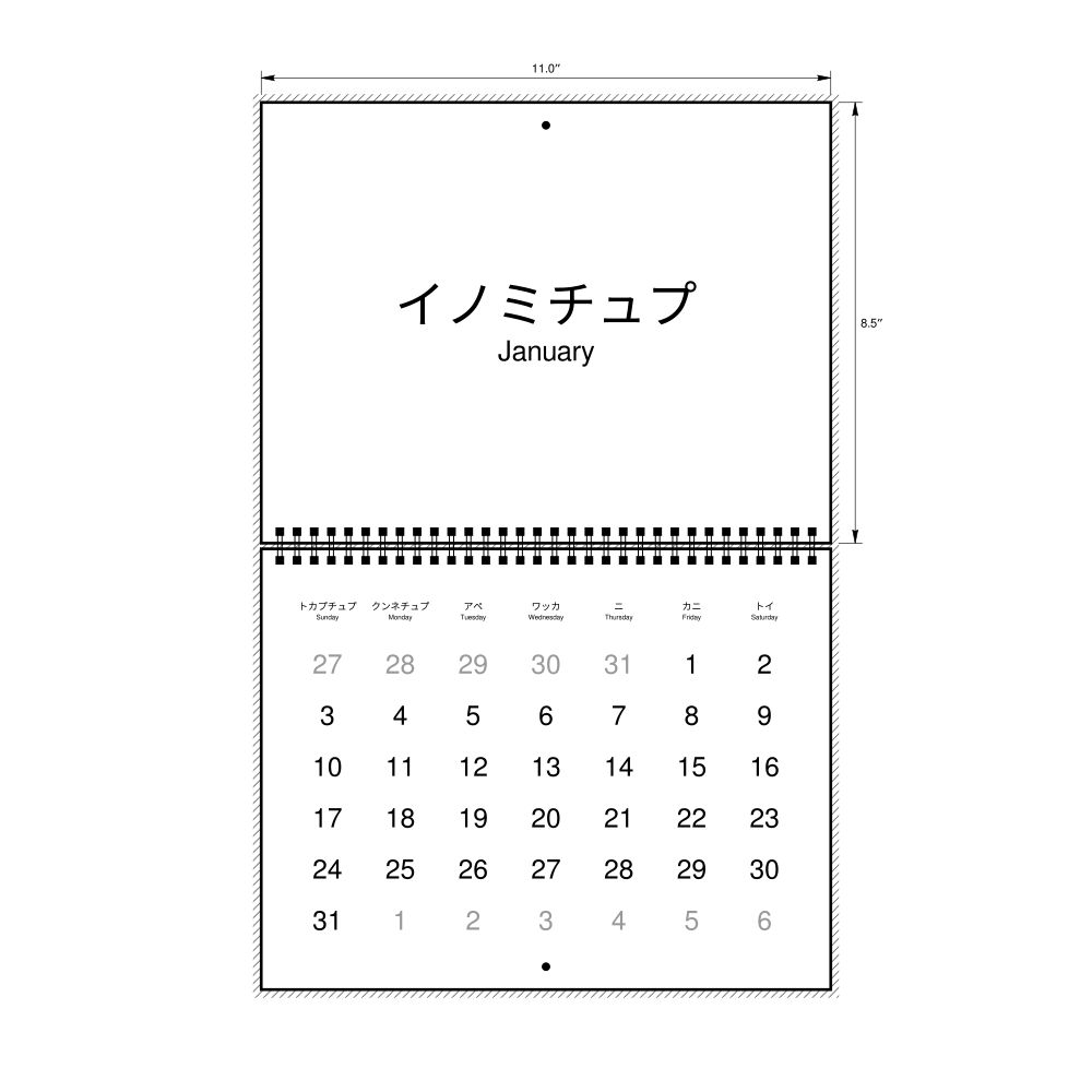 2027 Wall CalendarAinu/English-Labeled, Sunday-Start Layout, Wire-Bound, 11 x 8.5 in (27.9 x 21.6 cm)