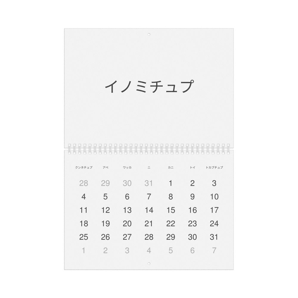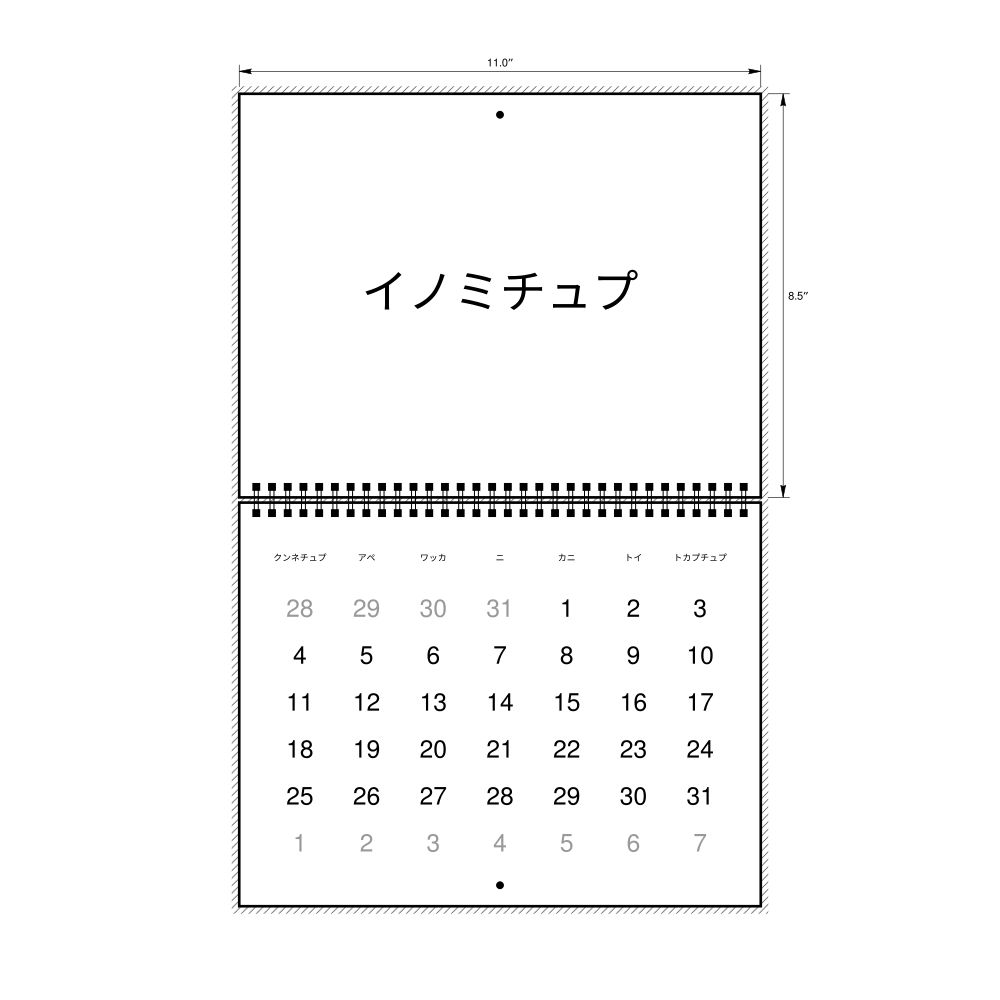 This calendar features the Ainu names of months and days of the week on top of a standard Gregorian calendar layout. Beyond its utility for tracking dates, it serves as an educational tool, cultural touchstone (cultural artifact), and functional decor (aesthetic object).