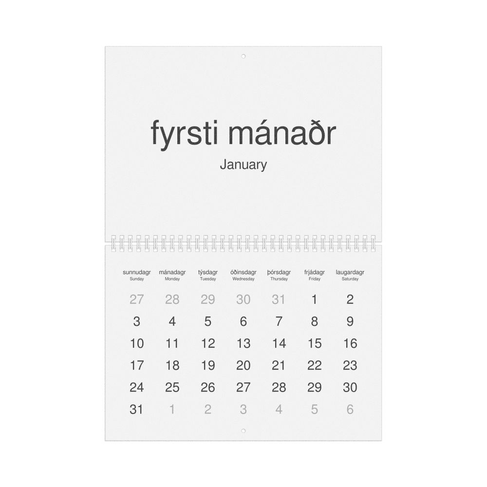 This calendar features the names of months and days of the week in Old Norse on top of a modern, standard Gregorian calendar layout. Beyond its utility for tracking dates, it serves as an educational tool and functional decor (aesthetic object).