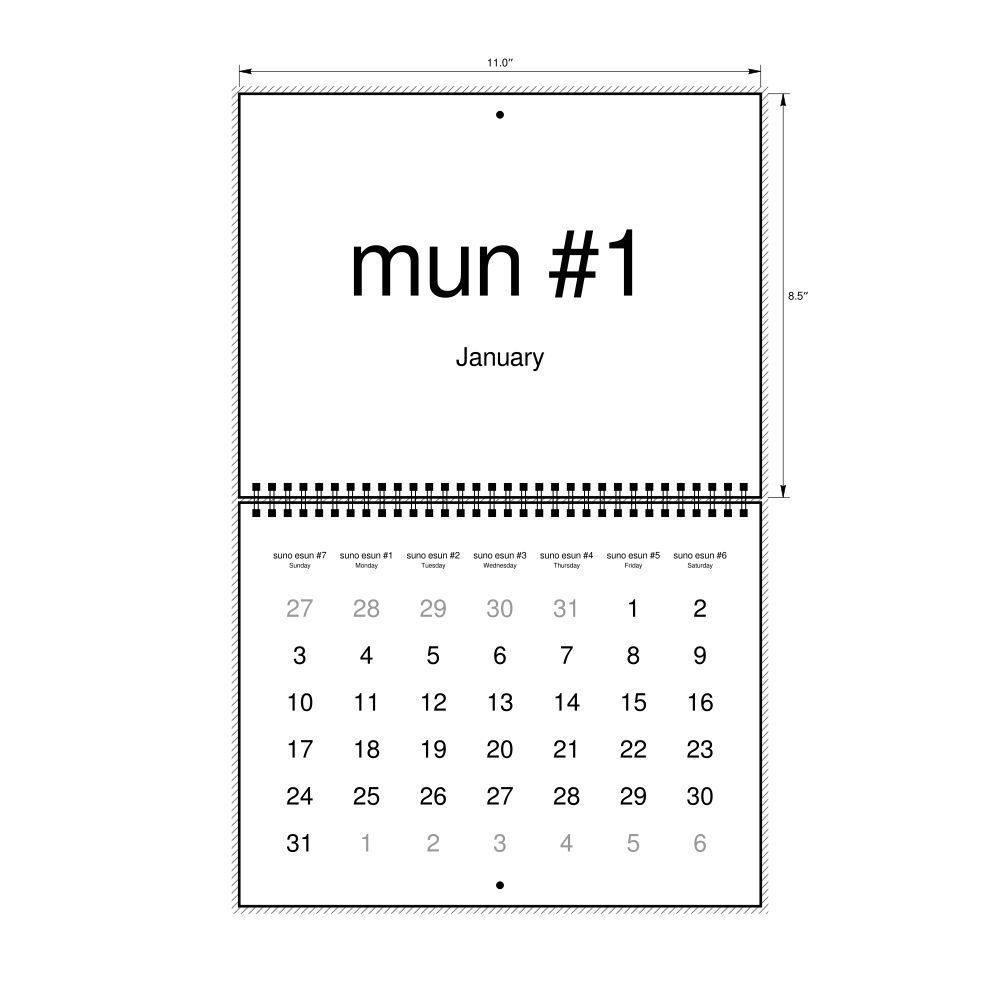 2027 Wall CalendarToki Pona/English-Labeled, Sunday-Start Layout, Wire-Bound, 11 x 8.5 in (27.9 x 21.6 cm)