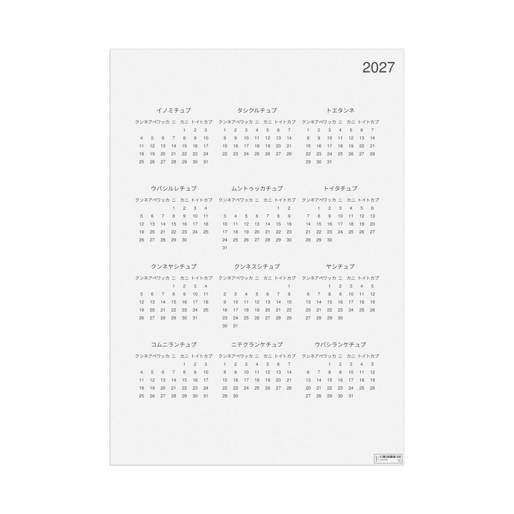 A 2027 wall calendar in Ainu. The calendar uses the Monday-start week format (common in the UK and Europe).