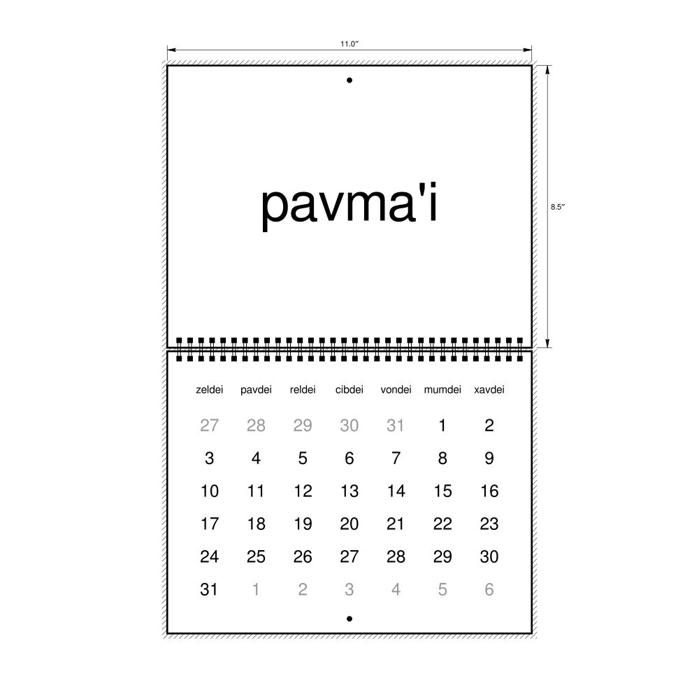 2027 Wall CalendarLojban-Labeled, Sunday-Start Layout, Wire-Bound, 11 x 8.5 in (27.9 x 21.6 cm)