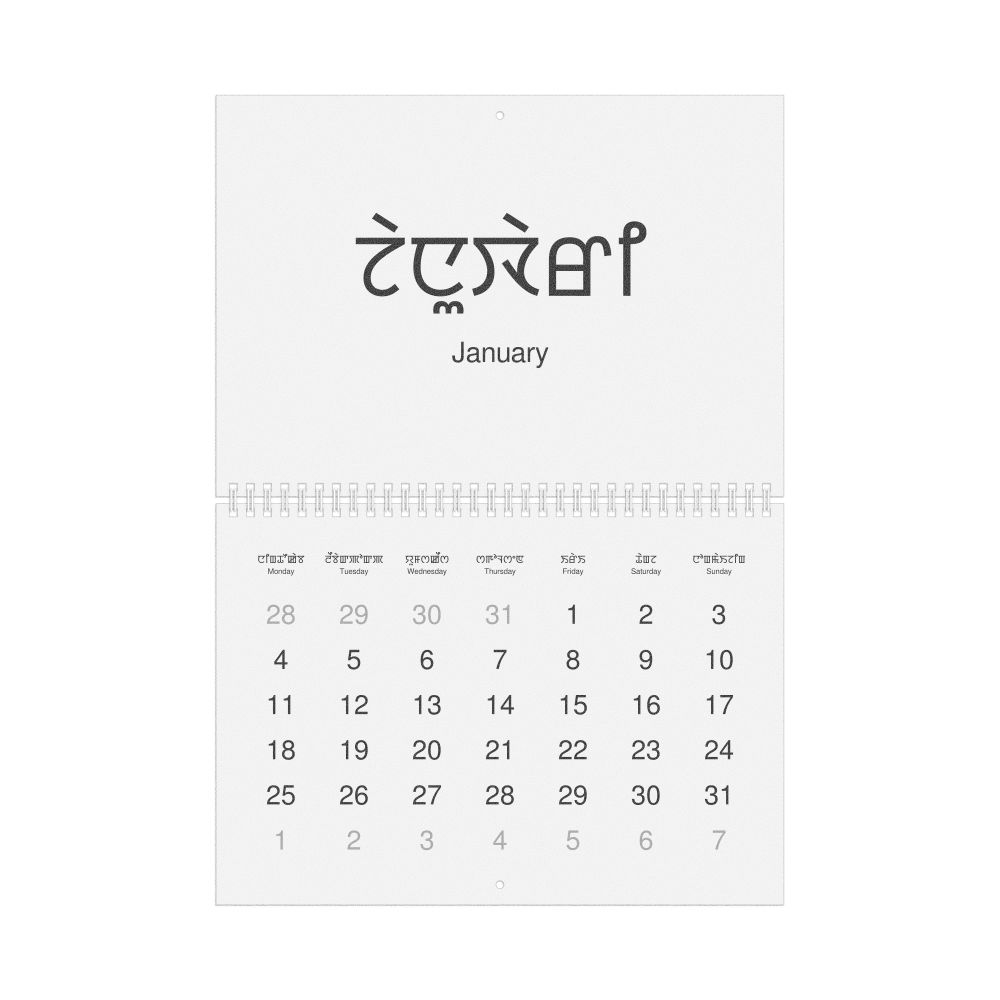 - Language learners and students - This calendar helps you translate between Meitei and English and acts as a tool for passive learning and vocabulary reinforcement. It integrates essential calendar vocabulary (months and days of the week) into a daily visual environment and promotes retention through passive immersion and spaced repetition. Place it above a desk or study area to support immersion techniques.
