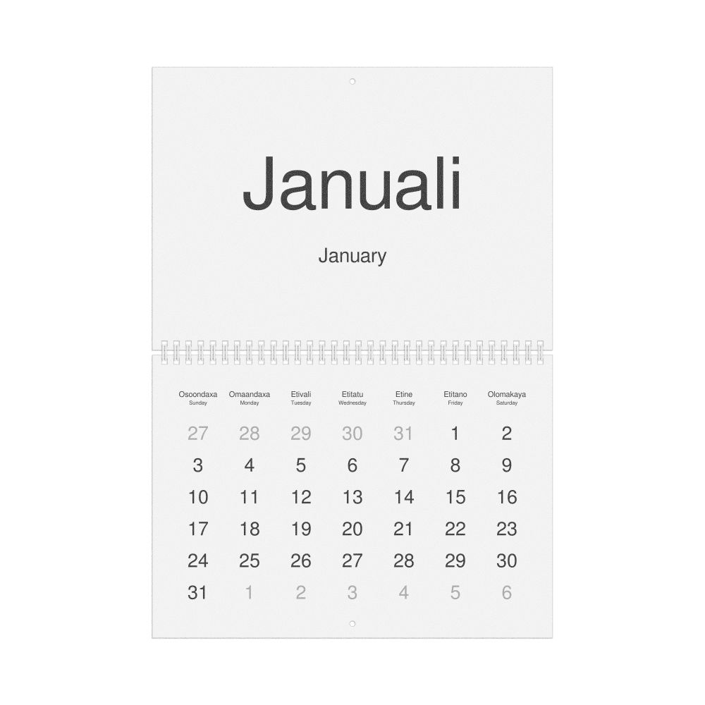 2026 Wall Calendar, Kwanyama-Labeled, Sunday-Start Layout, Wire-Bound, 11.7 x 8.3 in (29.7 x 21.0 cm)