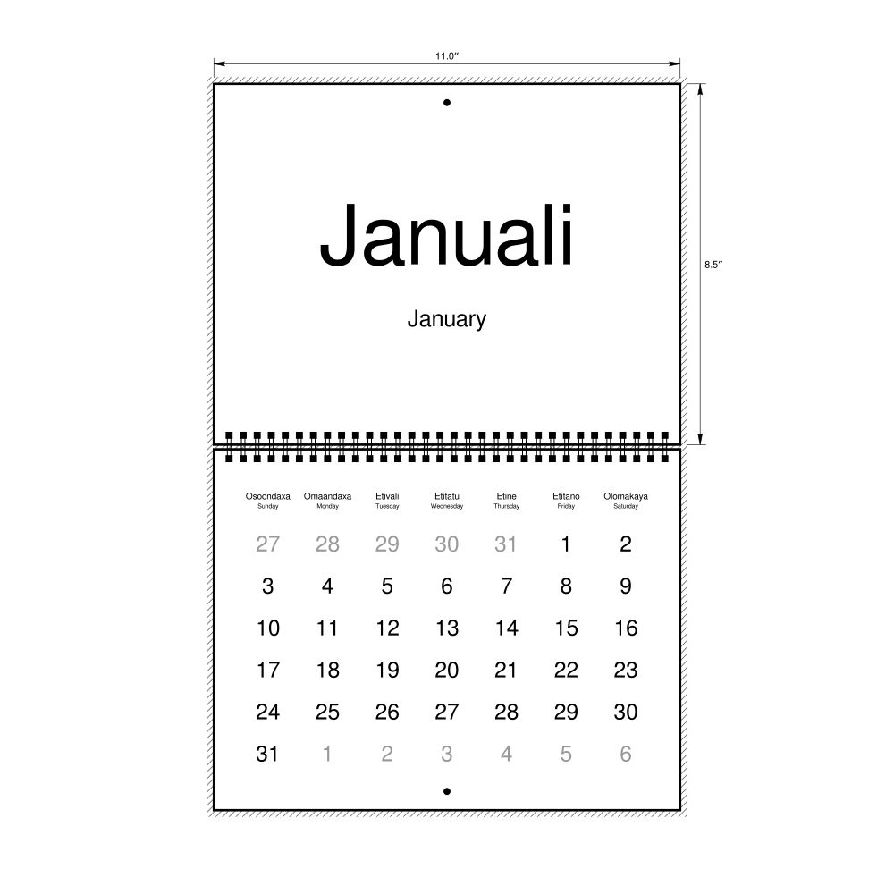 2027 Wall CalendarKwanyama/English-Labeled, Sunday-Start Layout, Wire-Bound, 11 x 8.5 in (27.9 x 21.6 cm)