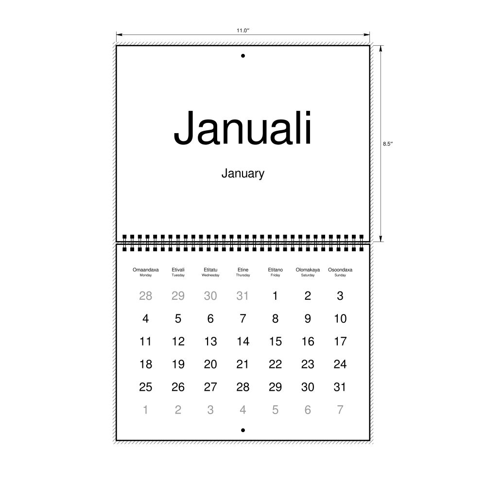2027 Wall CalendarKwanyama/English-Labeled, Monday-Start Layout, Wire-Bound, 11 x 8.5 in (27.9 x 21.6 cm)