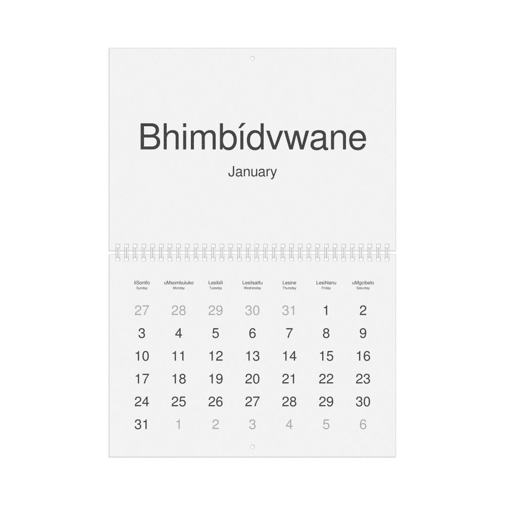 2026 Wall Calendar, Swazi-Labeled, Monday-Start Layout, Wire-Bound, 11.7 x 8.3 in (29.7 x 21.0 cm)
