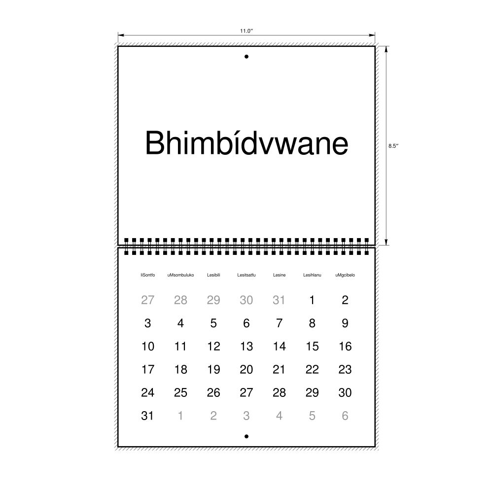 2027 Wall Calendar, Swazi/English-Labeled, Sunday-Start Layout, Wire-Bound, 11 x 8.5 in (27.9 x 21.6 cm)