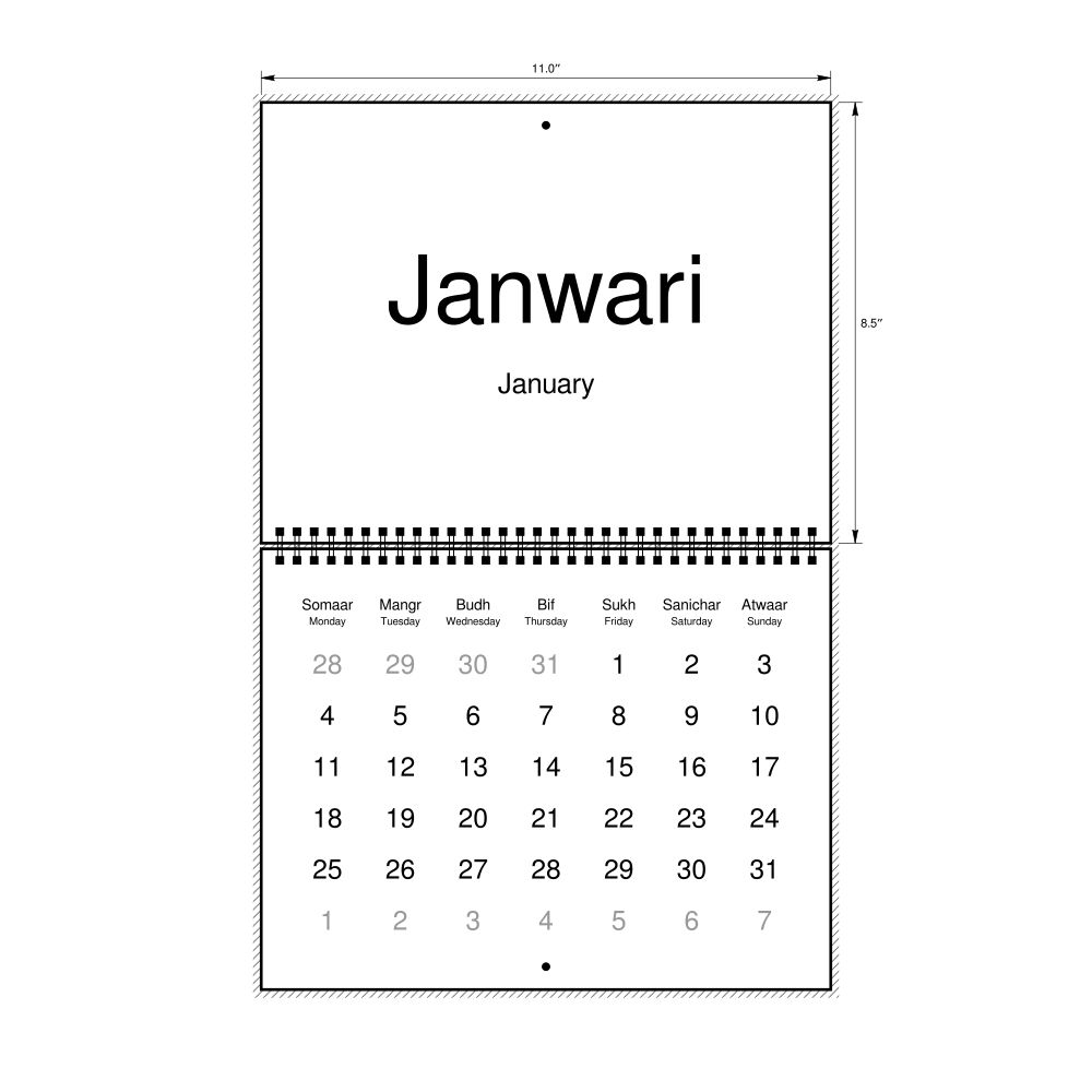 2027 Wall CalendarFiji Hindi/English-Labeled, Monday-Start Layout, Wire-Bound, 11 x 8.5 in (27.9 x 21.6 cm)