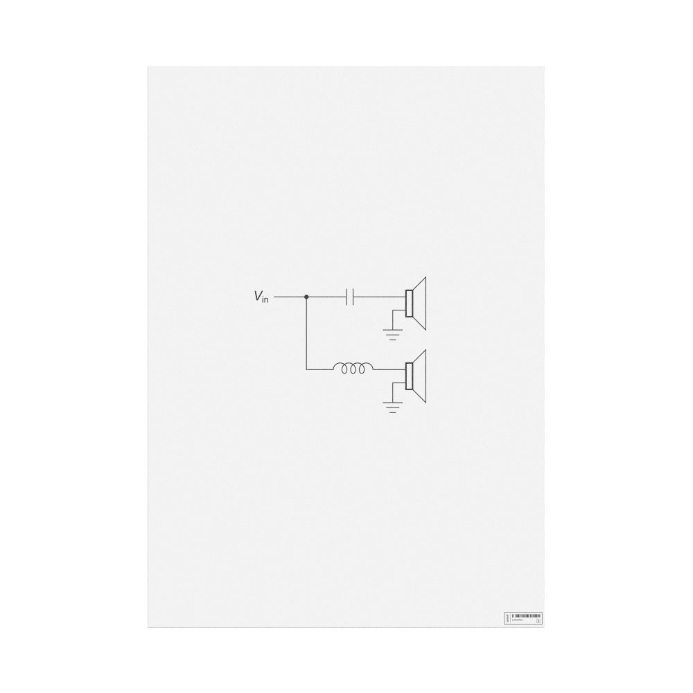 A poster featuring the passive crossover circuit diagram.