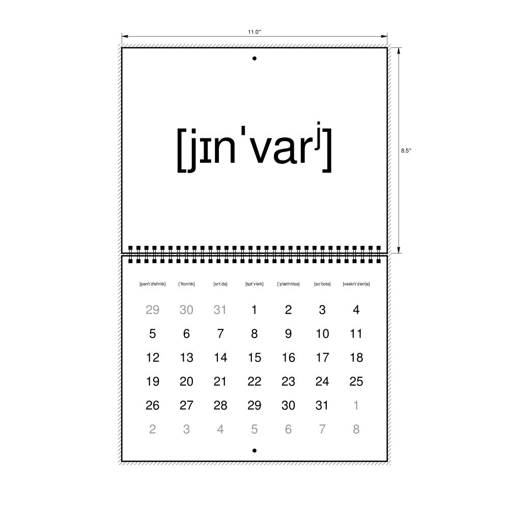 2026 Phonetic Wall CalendarIPA-Labeled (Russian), Monday-Start Layout, Wire-Bound, 11 x 8.5 in (27.9 x 21.6 cm)