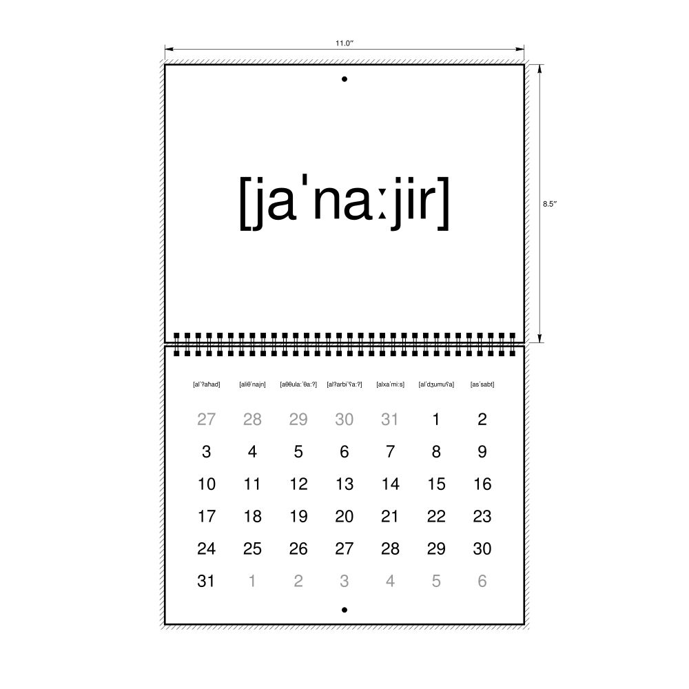 2027 Phonetic Wall Calendar, Arabic-Labeled with IPA, Sunday-Start Layout, Wire-Bound, 11 x 8.5 in (27.9 x 21.6 cm)