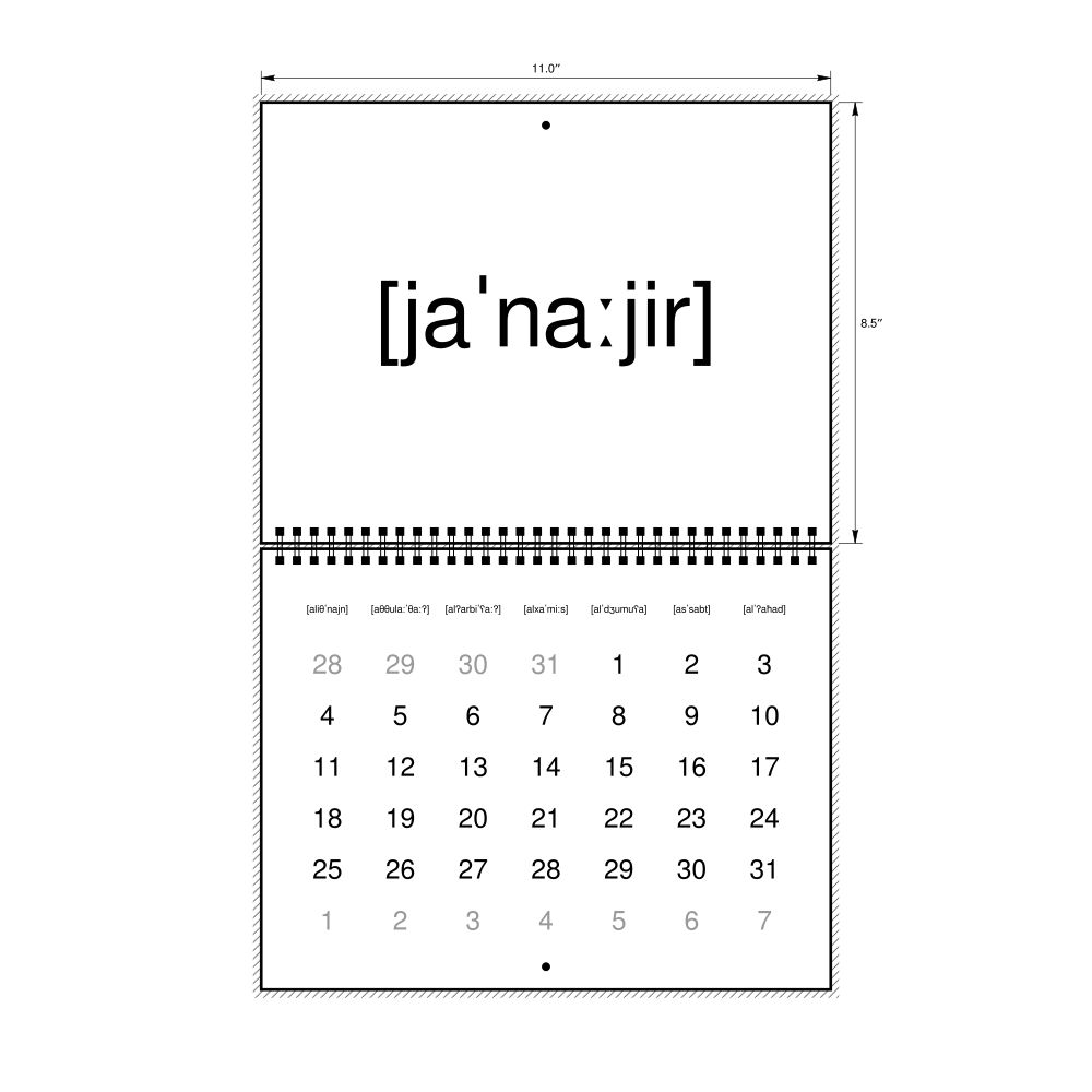 2027 Phonetic Wall CalendarIPA-Labeled (Arabic), Monday-Start Layout, Wire-Bound, 11 x 8.5 in (27.9 x 21.6 cm)