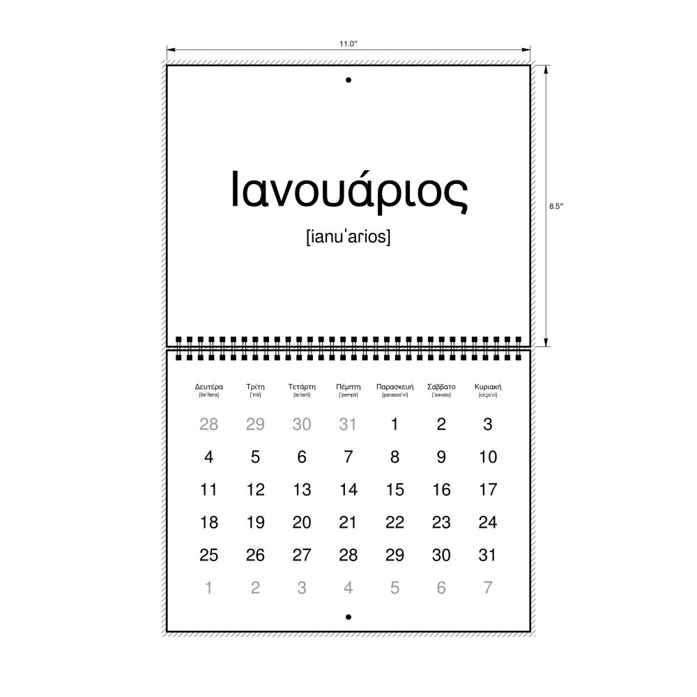 2027 Phonetic Wall CalendarGreek-Labeled with IPA, Monday-Start Layout, Wire-Bound, 11 x 8.5 in (27.9 x 21.6 cm)