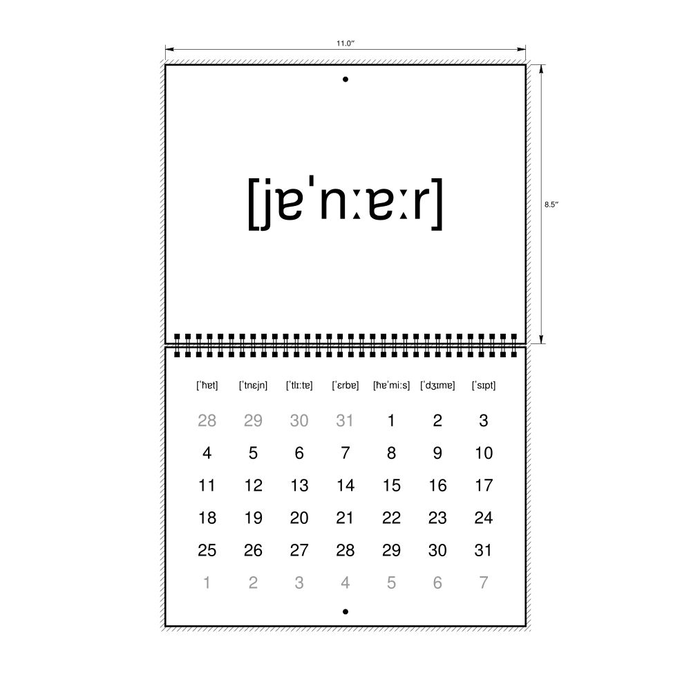 2027 Phonetic Wall Calendar, Maltese-Labeled with IPA, Sunday-Start Layout, Wire-Bound, 11 x 8.5 in (27.9 x 21.6 cm)
