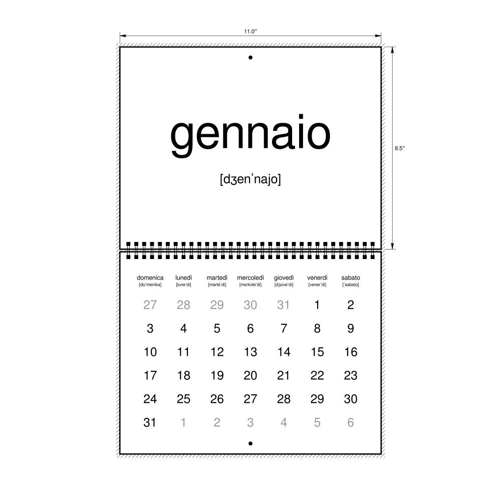 2027 Phonetic Wall CalendarItalian-Labeled with IPA, Sunday-Start Layout, Wire-Bound, 11 x 8.5 in (27.9 x 21.6 cm)