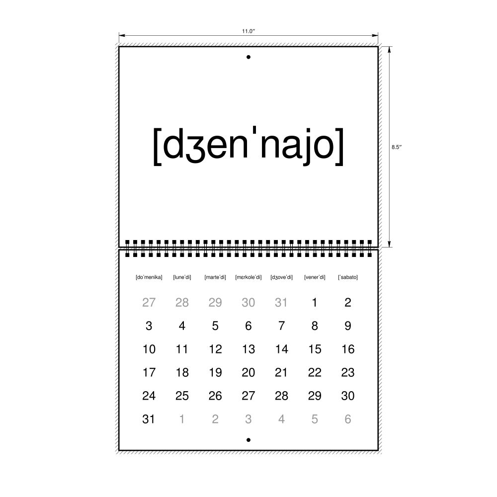 2027 Phonetic Wall CalendarIPA-Labeled (Italian), Sunday-Start Layout, Wire-Bound, 11 x 8.5 in (27.9 x 21.6 cm)