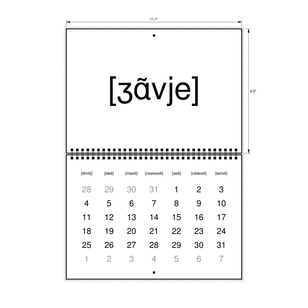 2027 Phonetic Wall Calendar, French-Labeled with IPA, Sunday-Start Layout, Wire-Bound, 11.7 x 8.3 in (29.7 x 21.0 cm)