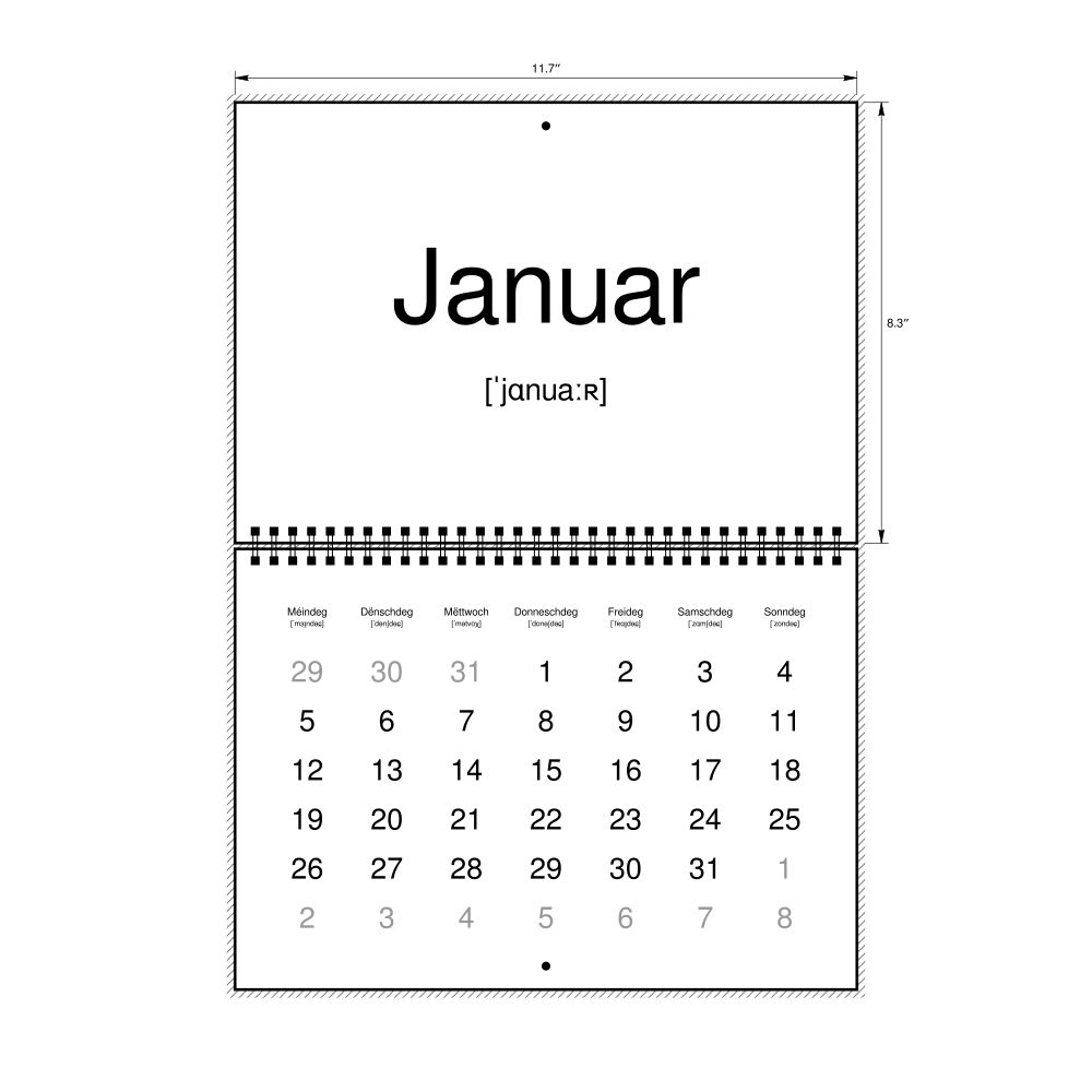 2027 Phonetic Wall Calendar, Luxembourgish-Labeled with IPA, Sunday-Start Layout, Wire-Bound, 11.7 x 8.3 in (29.7 x 21.0 cm)