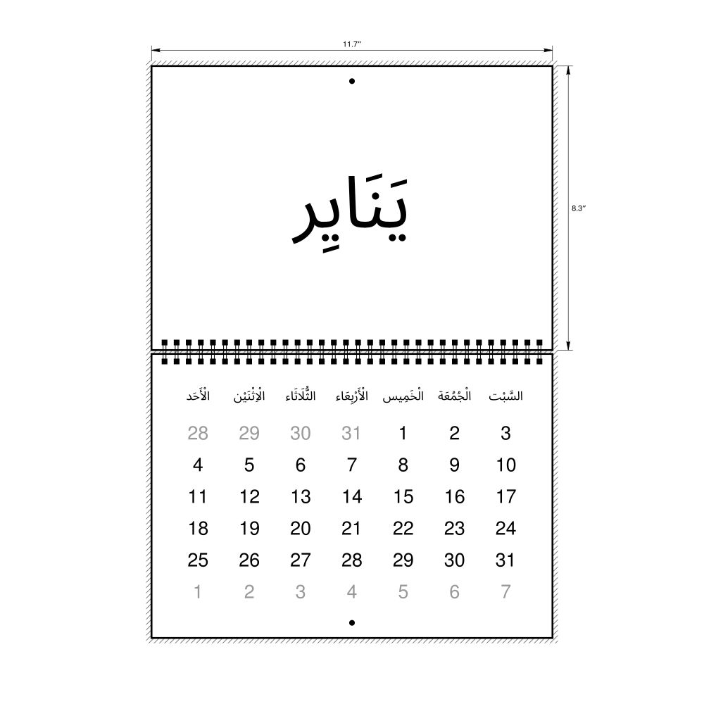 - Arabic heritage speakers and cultural connectors - For individuals seeking to maintain a connection to their history, ancestral roots, or the culture associated with the Arabic language, the calendar serves as a daily cultural marker. Use it in your home, office, library, or museum as a link to linguistic and cultural identity that integrates Arabic into your everyday life. Familiar language script and naming conventions may also provide a sense of home in a foreign environment.