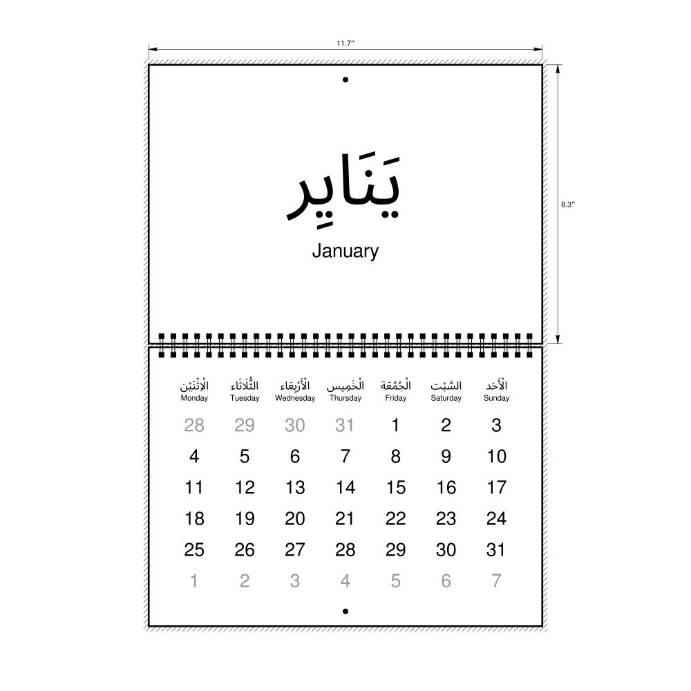 2027 Wall CalendarArabic (tashkeel)/English-Labeled, Monday-Start Layout, Wire-Bound, 11.7 x 8.3 in (29.7 x 21.0 cm)
