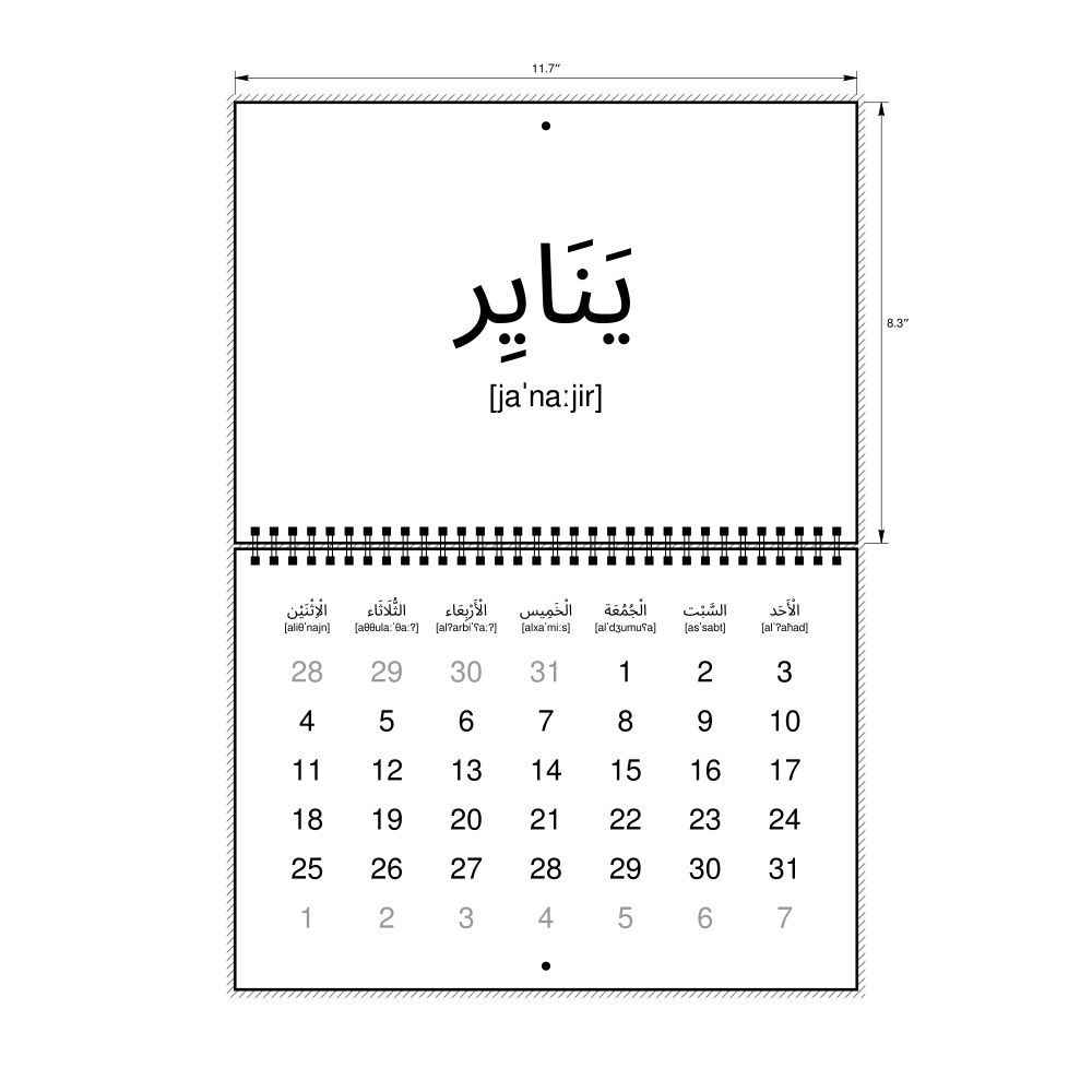 2027 Phonetic Wall CalendarArabic (tashkeel)-Labeled with IPA, Monday-Start Layout, Wire-Bound, 11.7 x 8.3 in (29.7 x 21.0 cm)