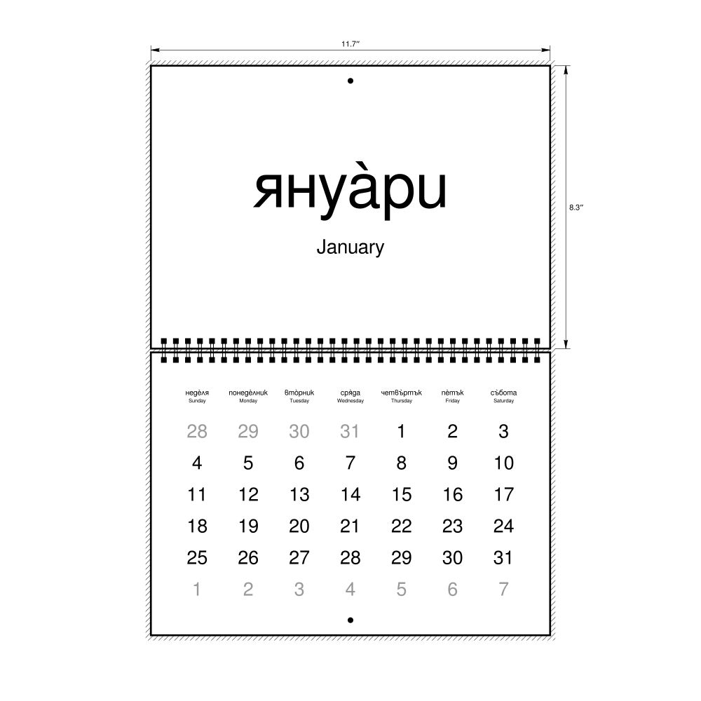 2026 Wall CalendarBulgarian (accented)/English-Labeled, Sunday-Start Layout, Wire-Bound, 11.7 x 8.3 in (29.7 x 21.0 cm)