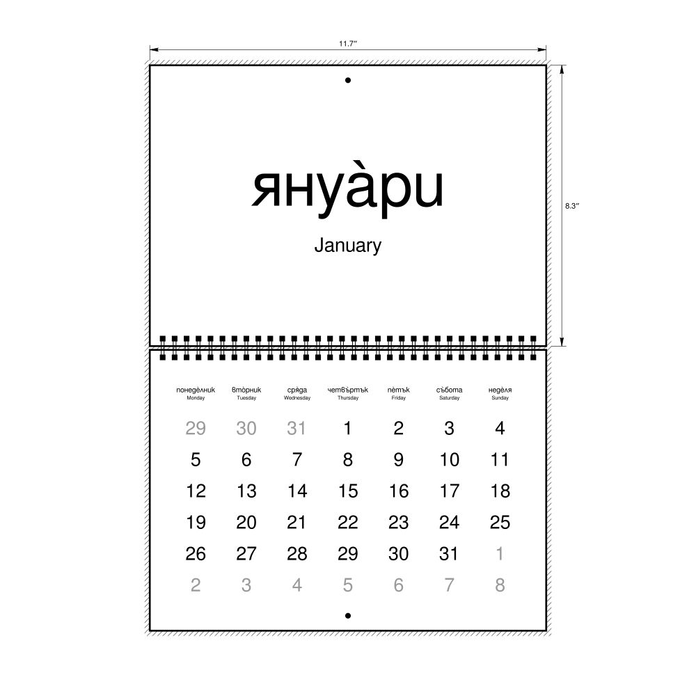2026 Wall CalendarBulgarian (accented)/English-Labeled, Monday-Start Layout, Wire-Bound, 11.7 x 8.3 in (29.7 x 21.0 cm)