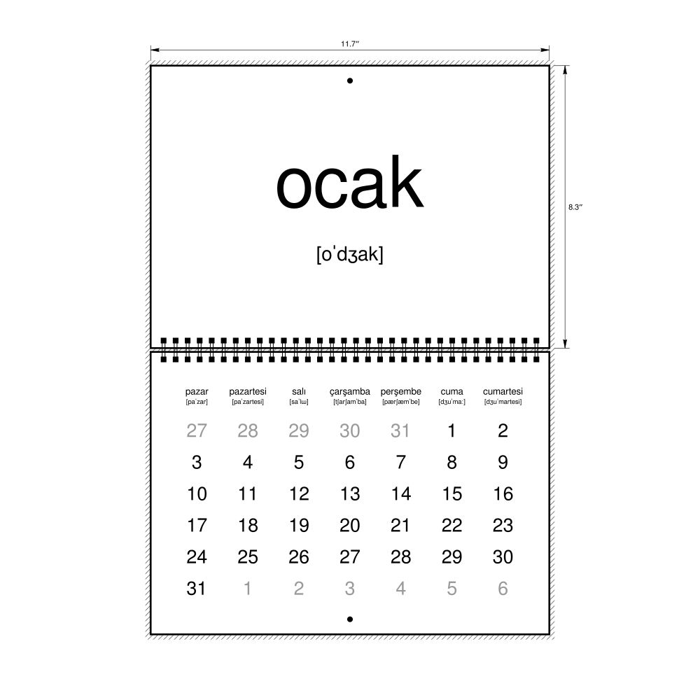 2027 Phonetic Wall CalendarTurkish-Labeled with IPA, Sunday-Start Layout, Wire-Bound, 11.7 x 8.3 in (29.7 x 21.0 cm)