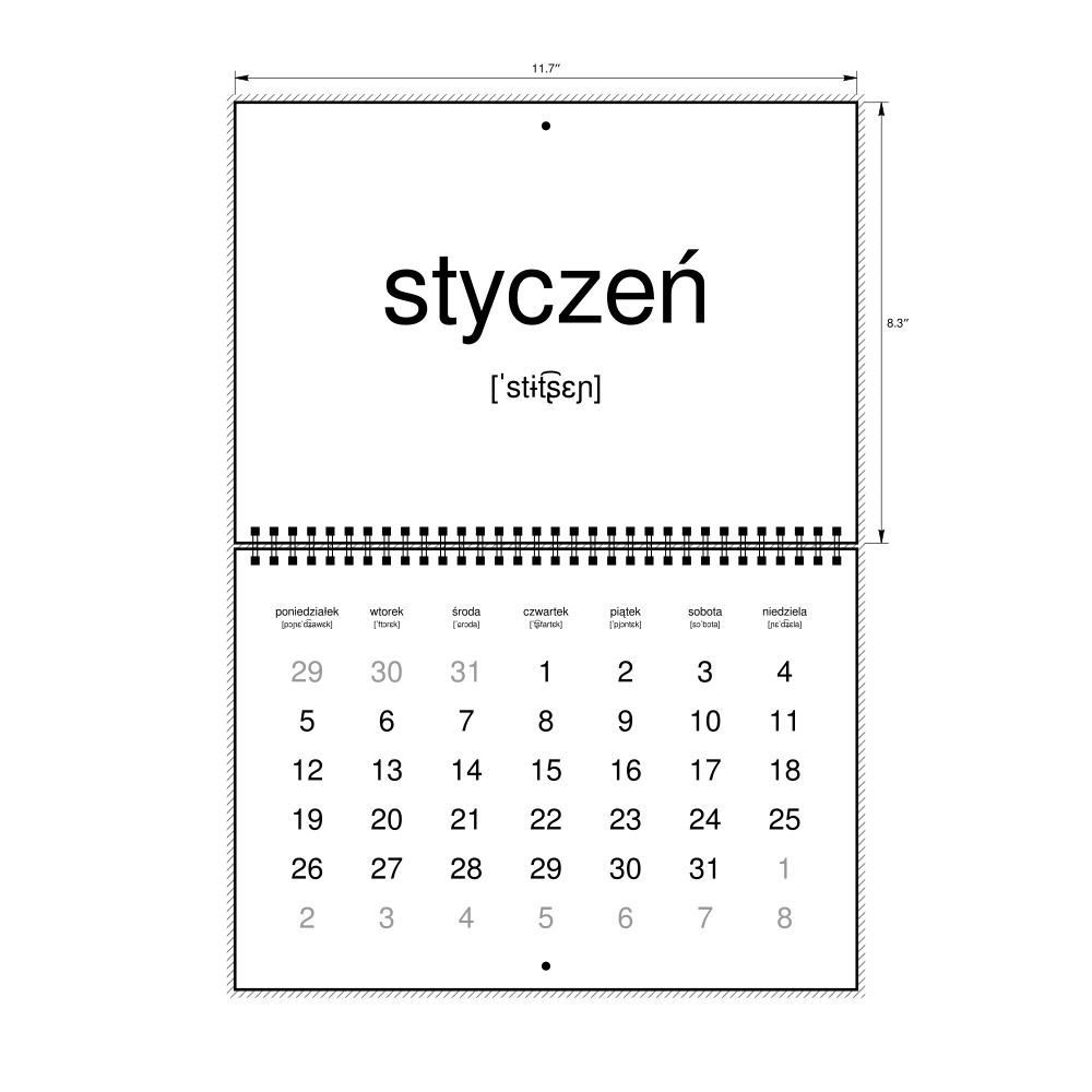 2026 Phonetic Wall Calendar, IPA-Labeled (Polish), Monday-Start Layout, Wire-Bound, 11.7 x 8.3 in (29.7 x 21.0 cm)