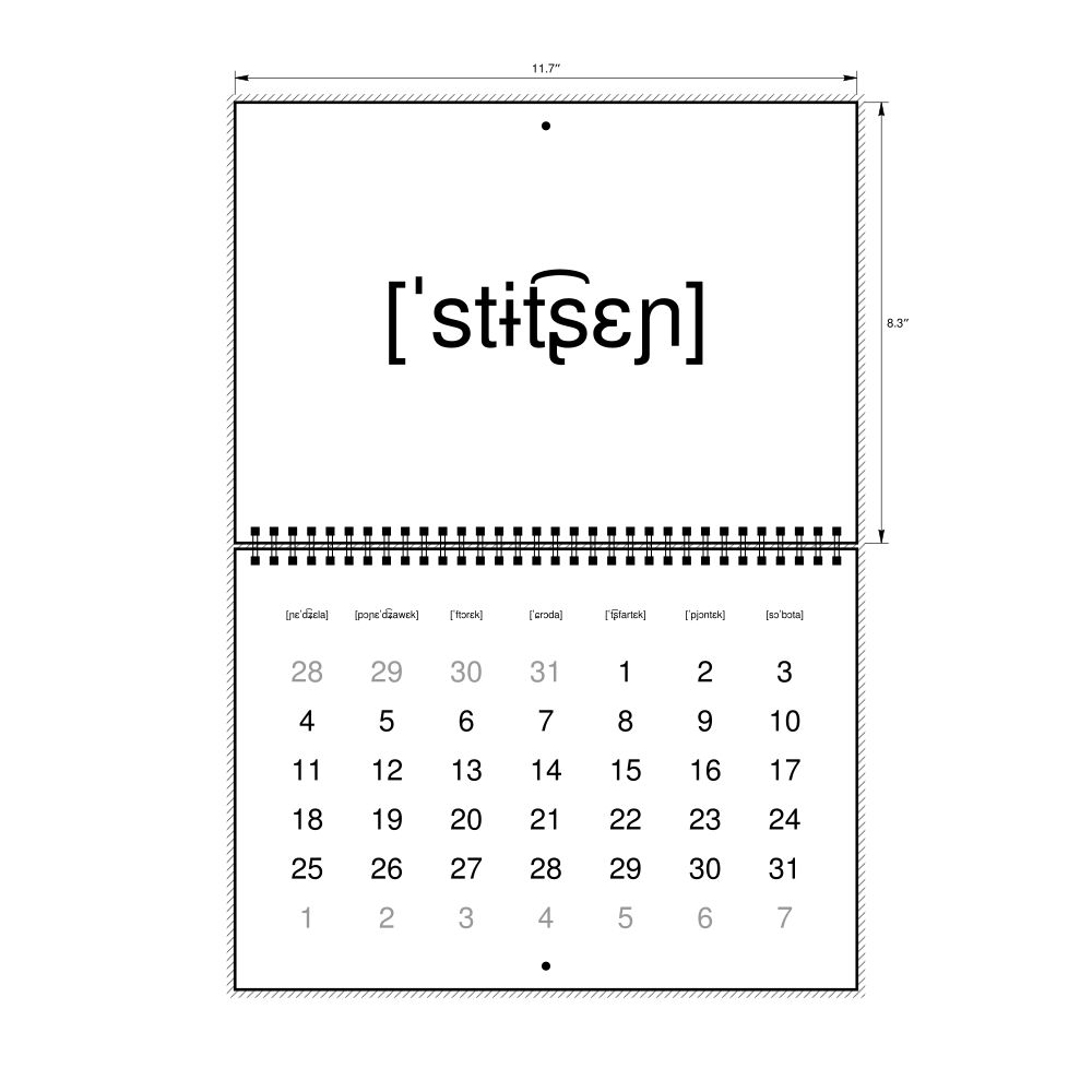 2026 Phonetic Wall CalendarIPA-Labeled (Polish), Sunday-Start Layout, Wire-Bound, 11.7 x 8.3 in (29.7 x 21.0 cm)
