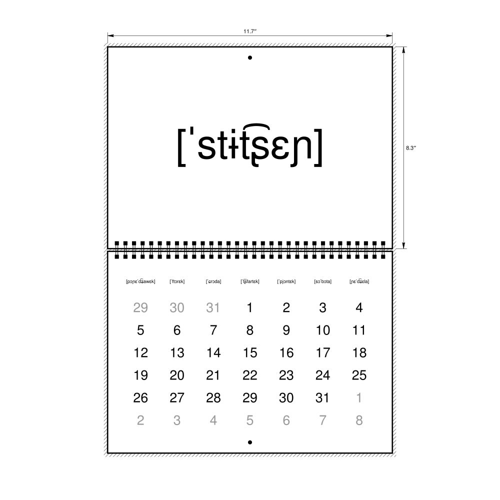 2026 Phonetic Wall CalendarIPA-Labeled (Polish), Monday-Start Layout, Wire-Bound, 11.7 x 8.3 in (29.7 x 21.0 cm)