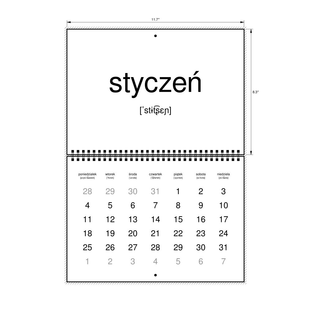 2027 Phonetic Wall Calendar, IPA-Labeled (Polish), Sunday-Start Layout, Wire-Bound, 11.7 x 8.3 in (29.7 x 21.0 cm)