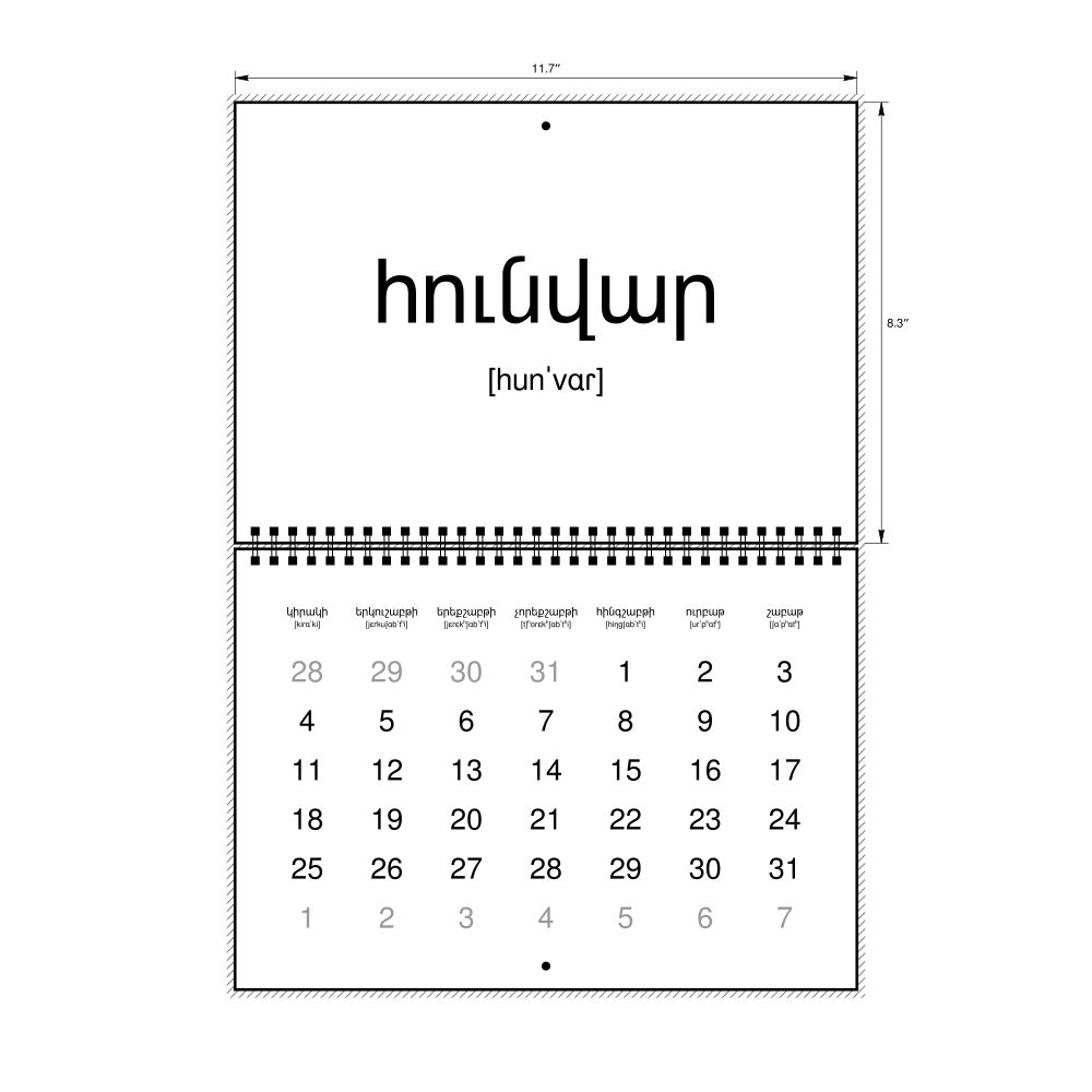 2026 Phonetic Wall Calendar, IPA-Labeled (Armenian), Sunday-Start Layout, Wire-Bound, 11.7 x 8.3 in (29.7 x 21.0 cm)