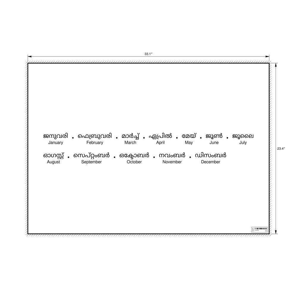 A poster of the months of the year in Malayalam (വർഷത്തിലെ മാസങ്ങൾ) with English translations.