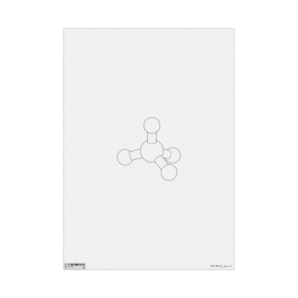 A poster featuring the ball-and-stick model (stylized) of the methane molecule.