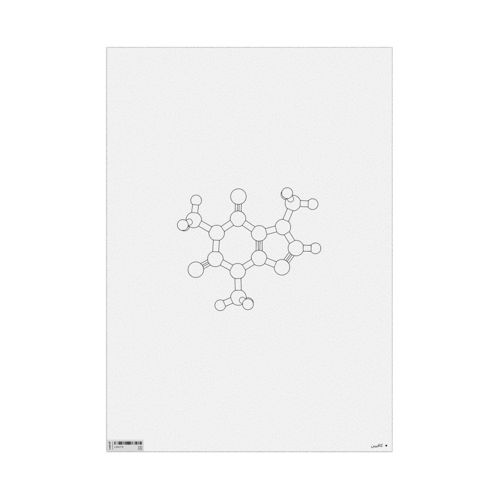 A poster featuring the ball-and-stick model (stylized) of the caffeine molecule.