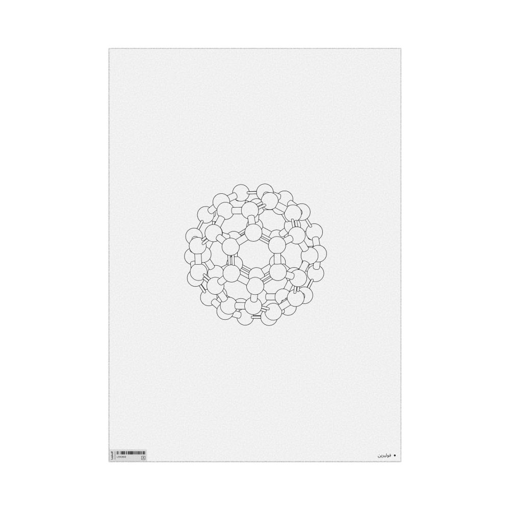A poster featuring the ball-and-stick model (stylized) of the fullerene molecule in Arabic (فوليرين).