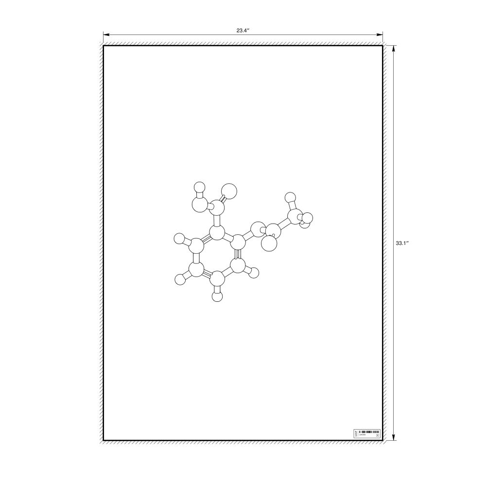 A poster featuring the ball-and-stick model (stylized) of the aspirin molecule.