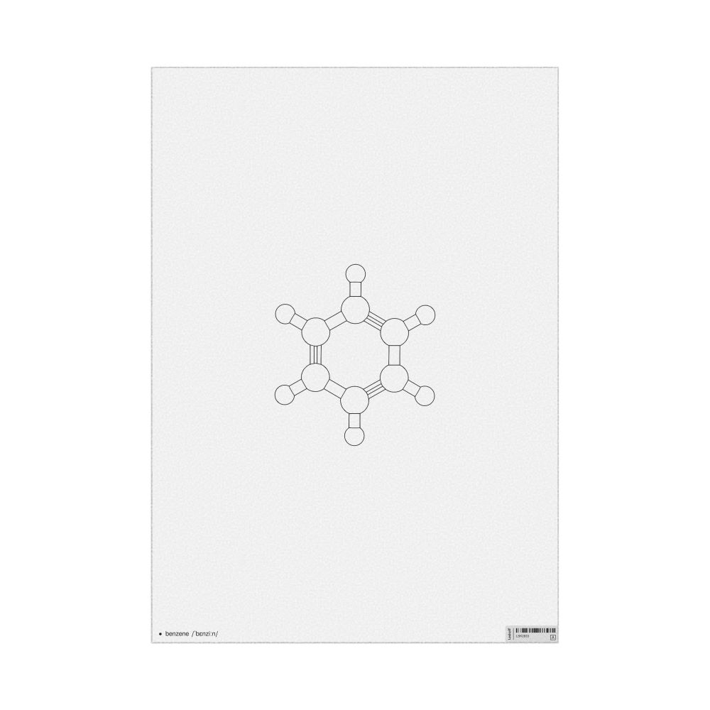 A poster featuring the ball-and-stick model (stylized) of the benzene molecule.