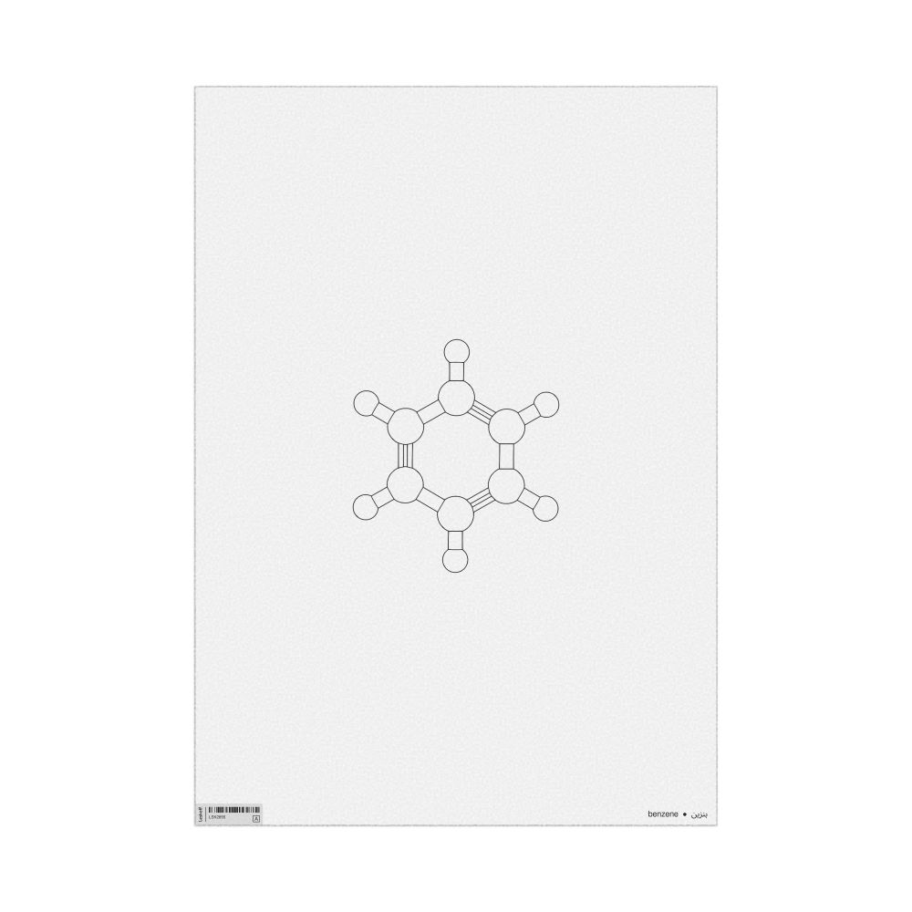 A poster featuring the ball-and-stick model (stylized) of the benzene molecule.