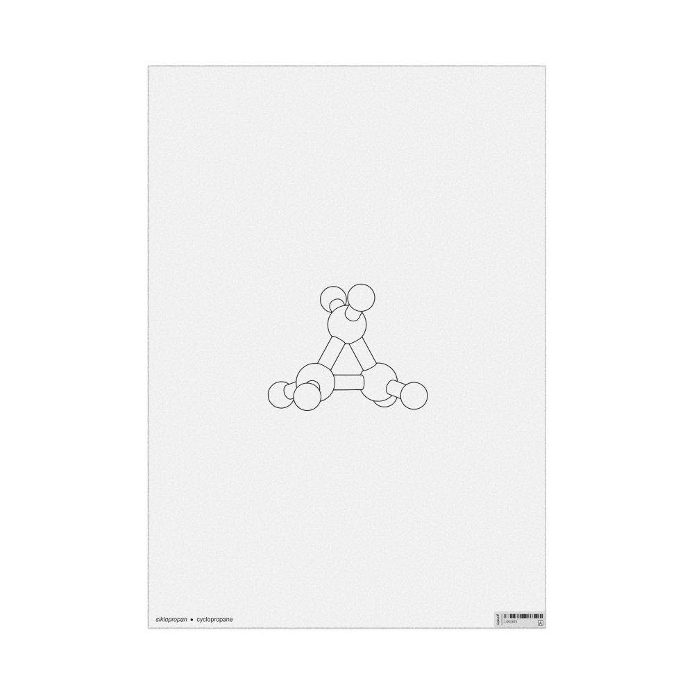 A poster featuring the ball-and-stick model (stylized) of the cyclopropane molecule.