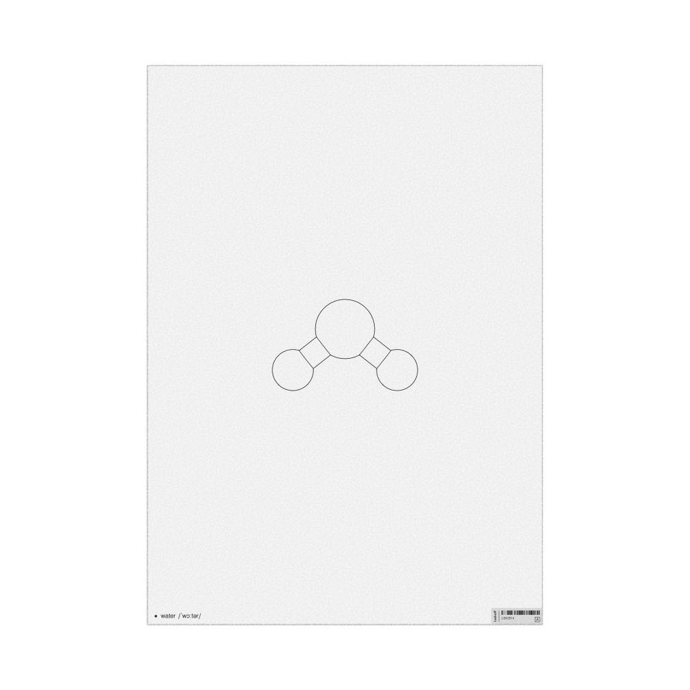 A poster featuring the ball-and-stick model (stylized) of the water molecule.